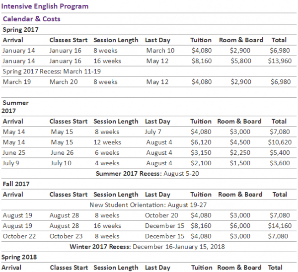 | 프로그램 | Intensive English Program 집중영어 프로그램 1954 년에 설립 된이 프로그램은 미국에서 두 번째로 오래된 프로그램입니다.