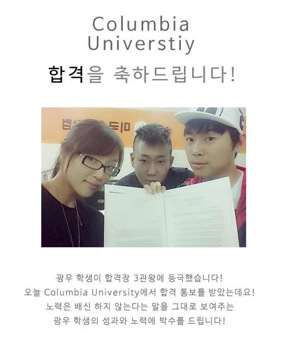 [합격장] 광우학생, Columbia 합격을 축하드립니다~